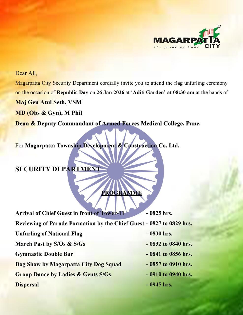 Republic Day on 26th Jan 2026 8.30am at Aditi Garden